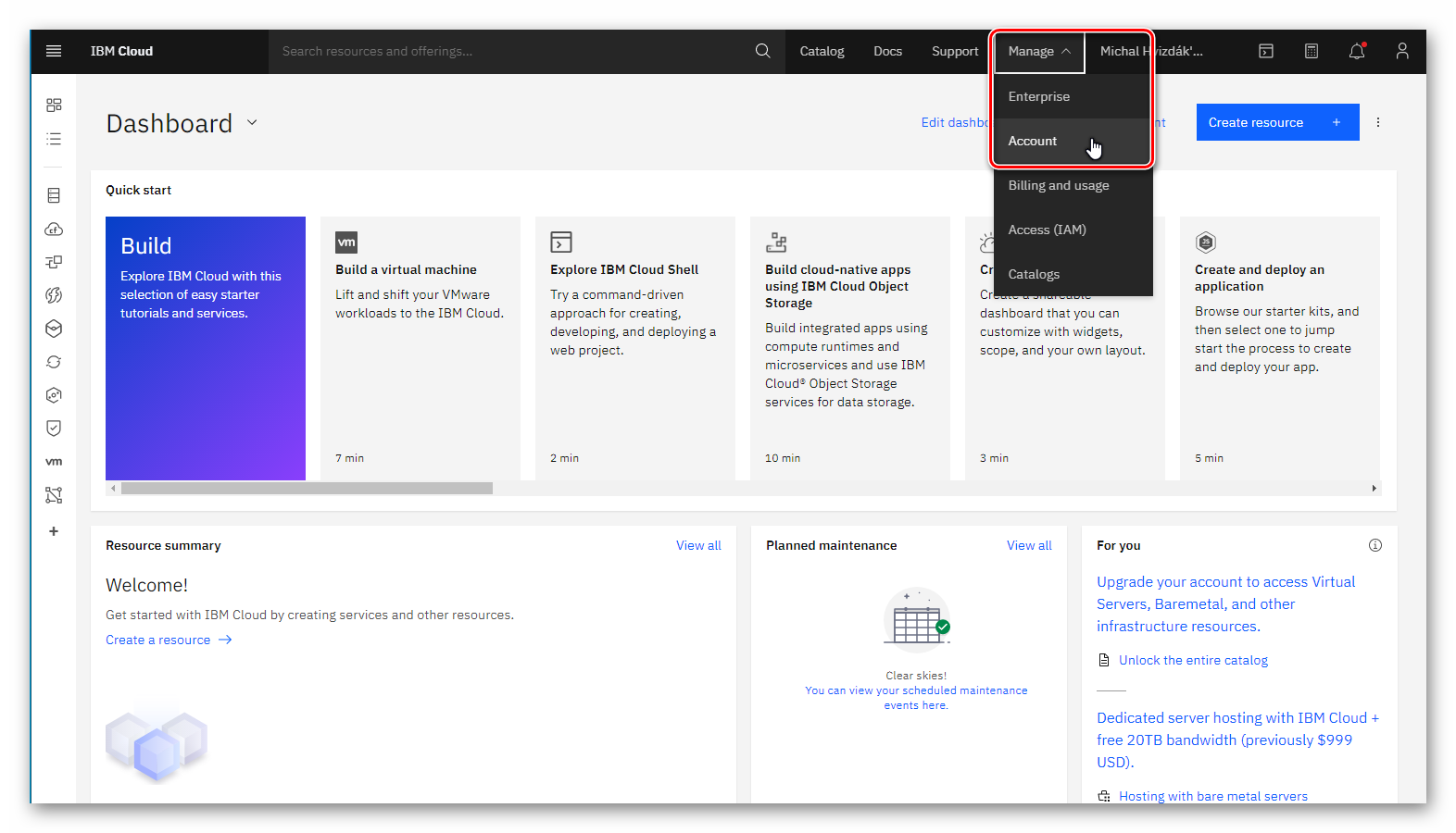 Prihláste sa do svojho účtu na IBM Cloud.