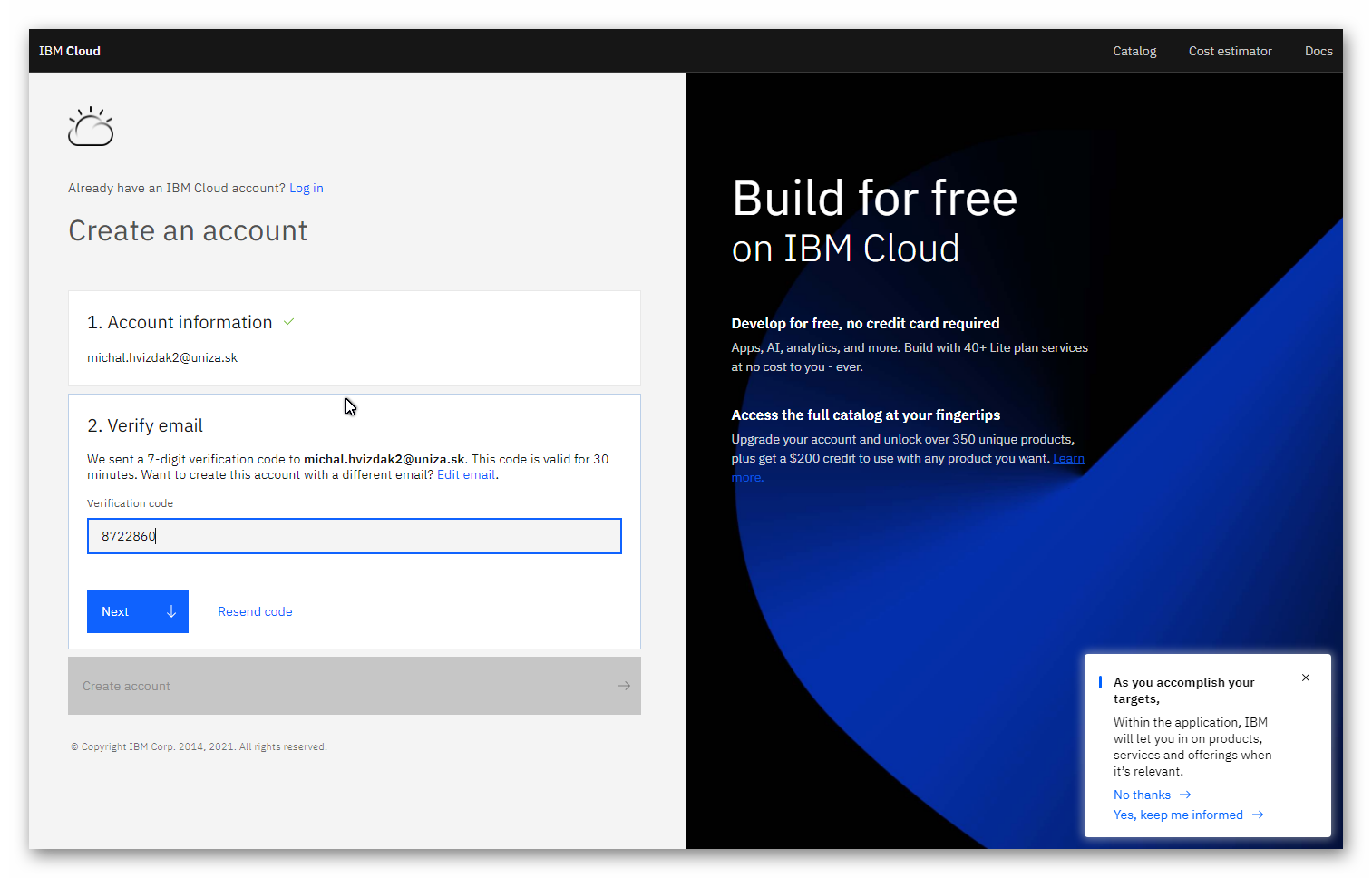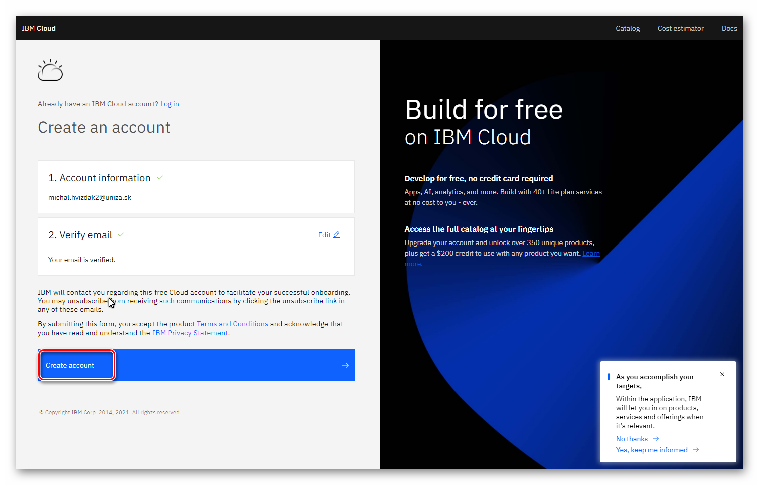 1 – Registrácia do IBM Cloud