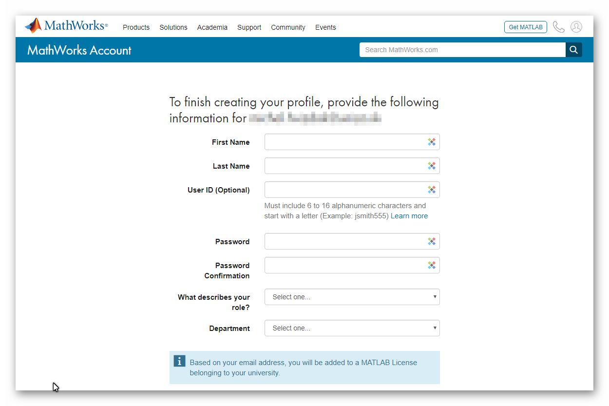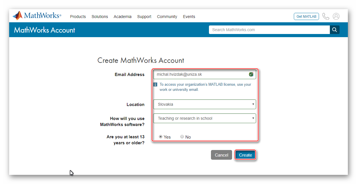 3 – Dokončite registráciu na mathworks.com