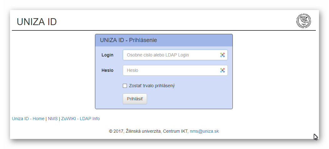 Prejdite na stránku UNIZA ID a prihláste sa svojim osobným číslom a heslom.
