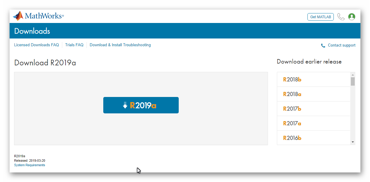 Môžete si vybrať verziu Matlab ktorú chcete stiahnuť na paneli napravo.