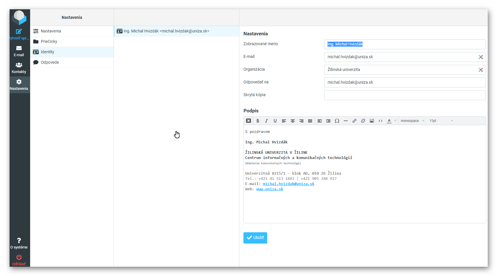 Pomocou webmailu môžu študenti a zamestnanci UNIZA pristupovať k svojej e-mailovej schránke aj prostredníctvom niektorého z dostupných internetových prehliadačov: