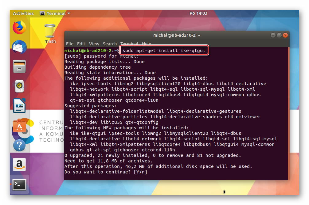 Otvorte terminál a zadajte príkaz na inštaláciu balíčku ike-qtgui.