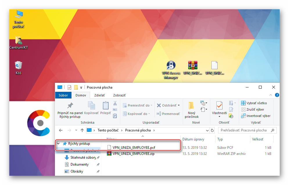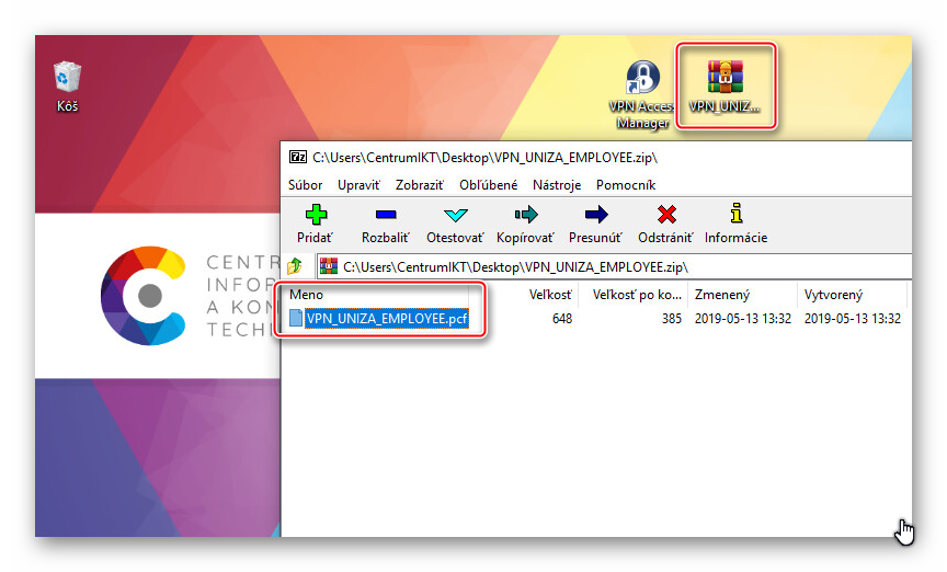 Súbory z archívu rozbaľte napr. pomocou aplikácie WinRAR napr. na plochu vo vašom PC.