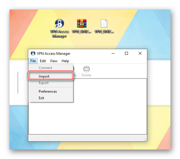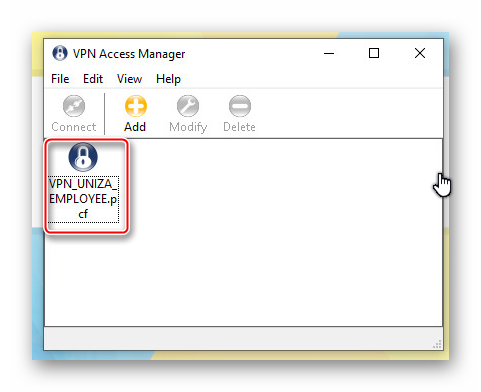 Spustite aplikáciu VPN Access Manager a naimportujte rozbalený konfiguračný súbor aplikácie.