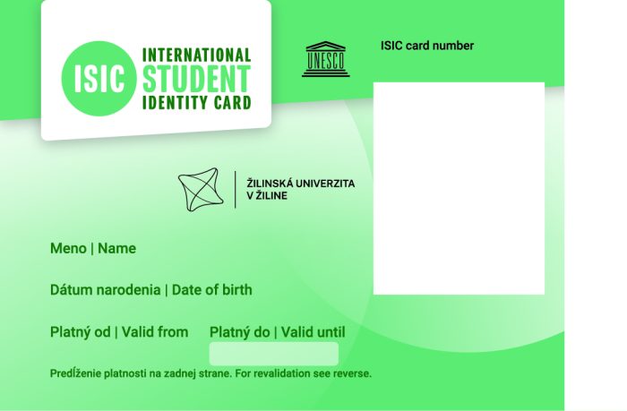 Pre študentov denného štúdia vydáva Žilinská univerzita v spolupráci s CKM SYTS medzinárodný študentský preukaz ISIC.