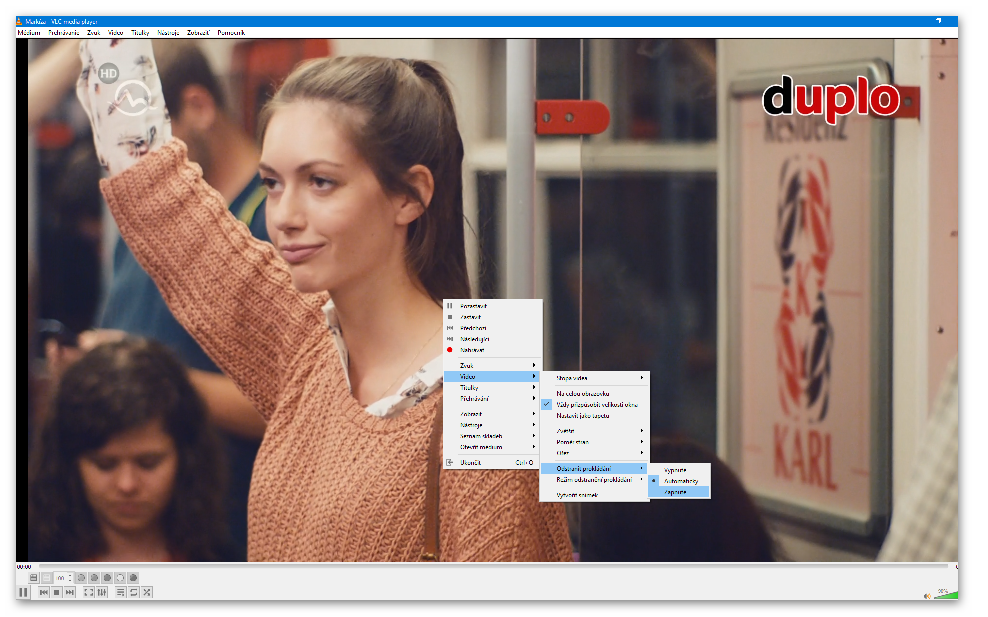 Pravým tlačidlom myši kliknite na obraz a vyberte Video -> Odstranit prokládaní – > Zapnuté.