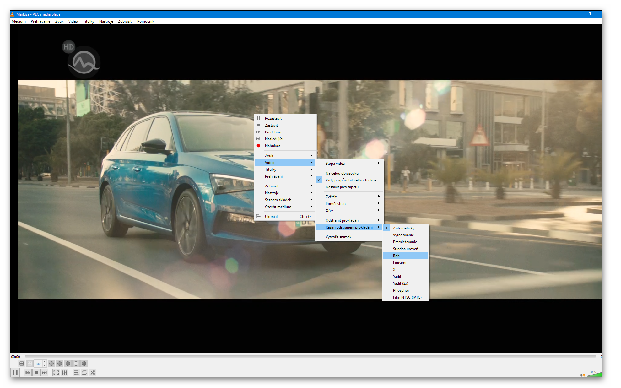 Pravým tlačidlom myši kliknite na obraz a vyberte Video -> Režim odstranění prokládání –> Bob.