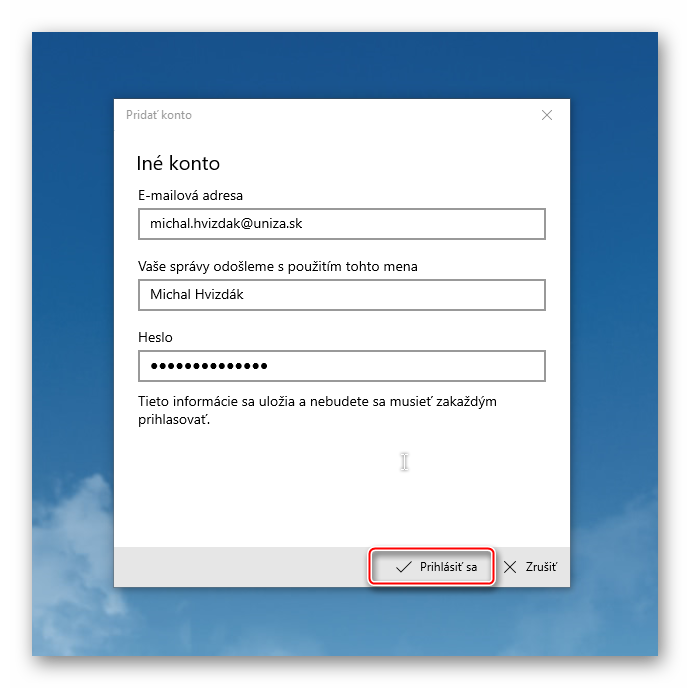 [tds_warning]Aplikácia Windows Pošta sa pokúsi nájsť nastavenia vášho konta, čo bude neúspešné, kliknite na Prihlásiť sa ešte 2x.[/tds_warning]